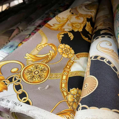 Zdjęcie przedstawia wizualizację z wykorzystaniem zdjęcia jedwabiu. Wzór na każdym produkcie może się nico różnić, co wynika z nadruku na jedwabiu. Dzięki temu każda szarfa będzie niepowtarzalna.